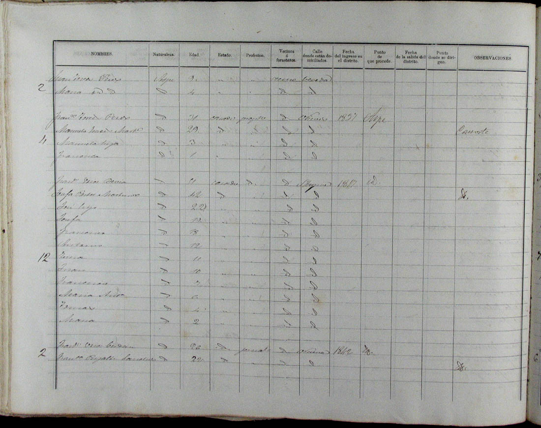 Padrón de habitantes, 1867