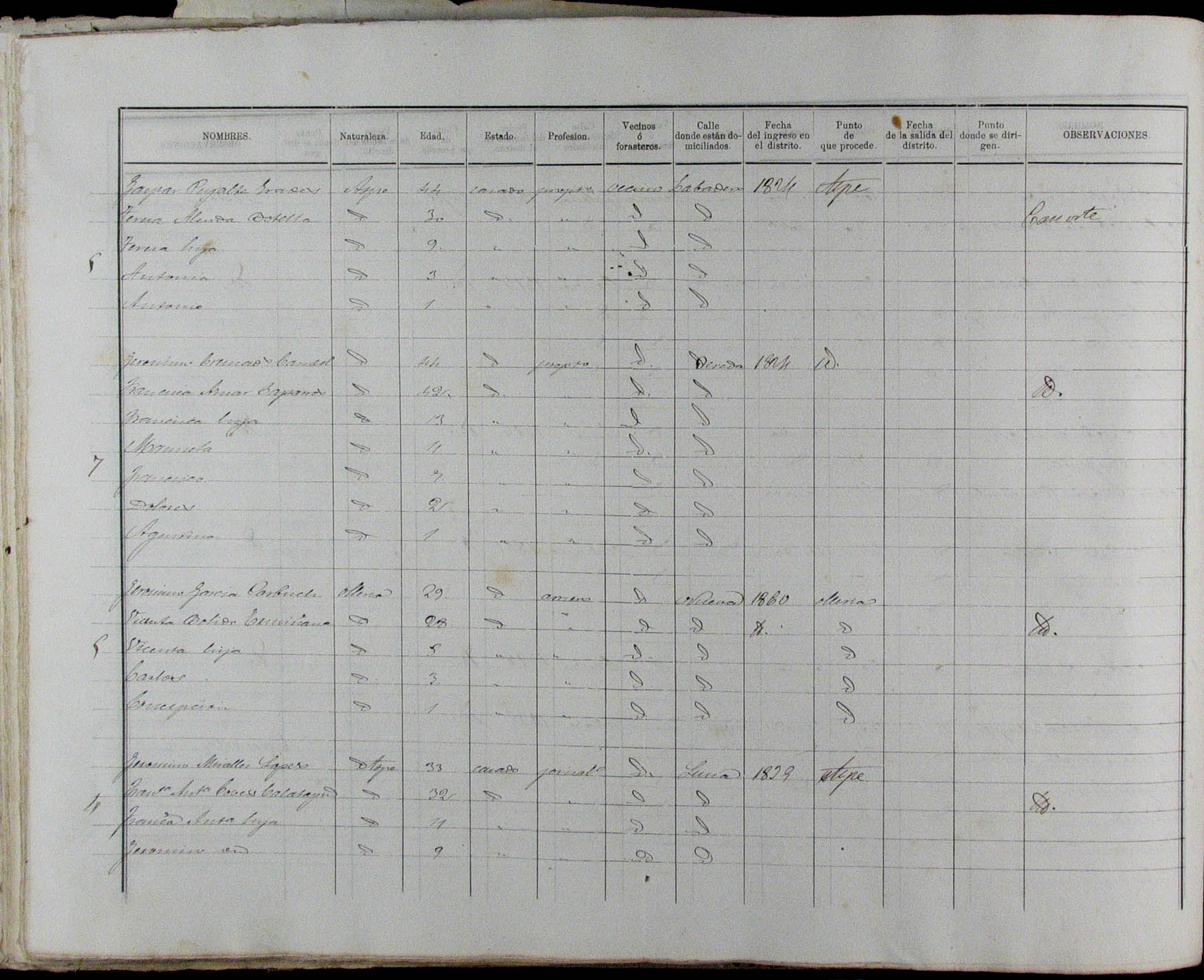 Padrón de habitantes, 1867