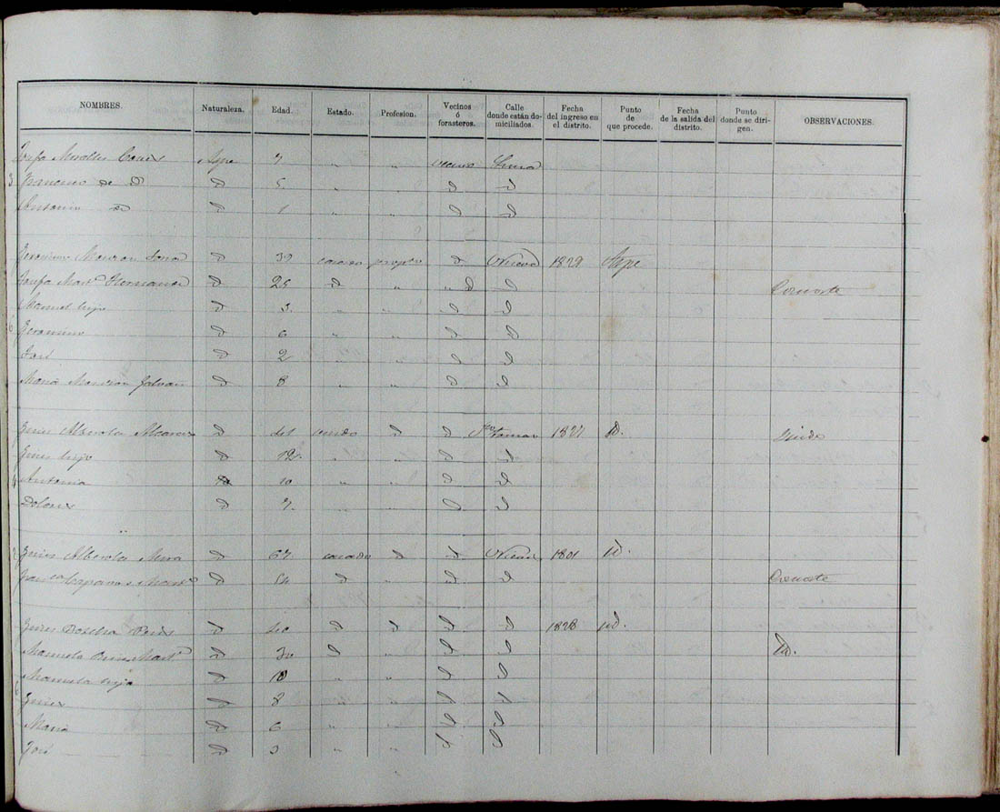 Padrón de habitantes, 1867