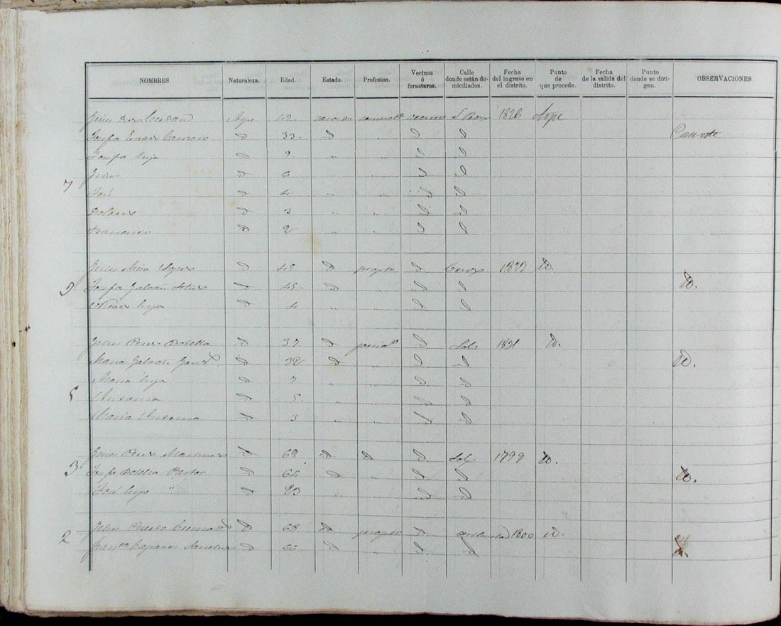 Padrón de habitantes, 1867