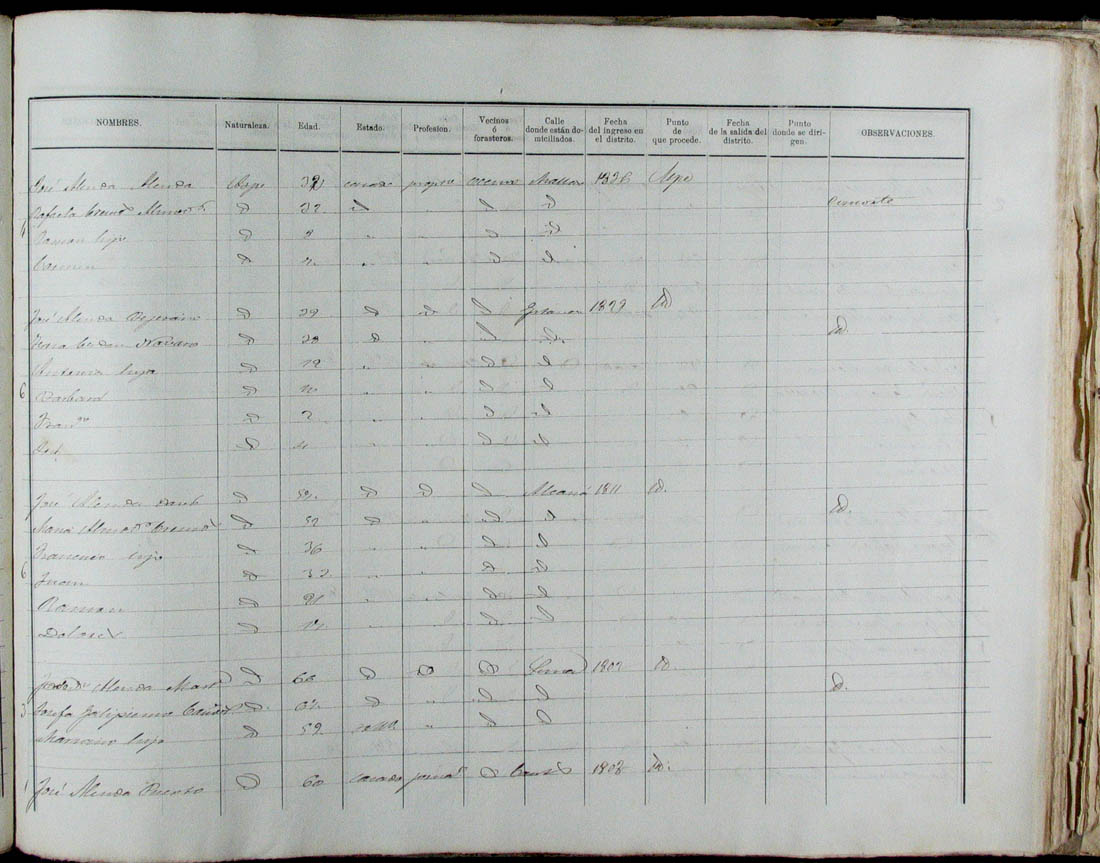 Padrón de habitantes, 1867