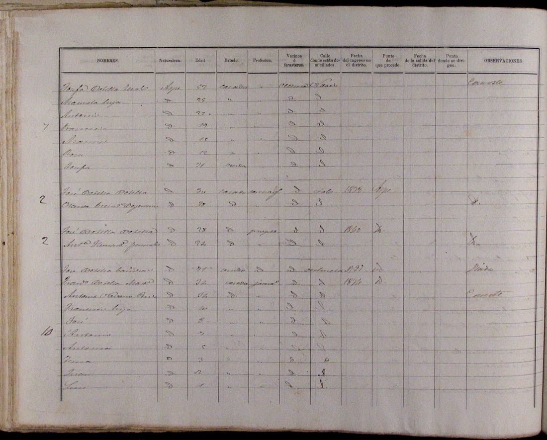 Padrón de habitantes, 1867