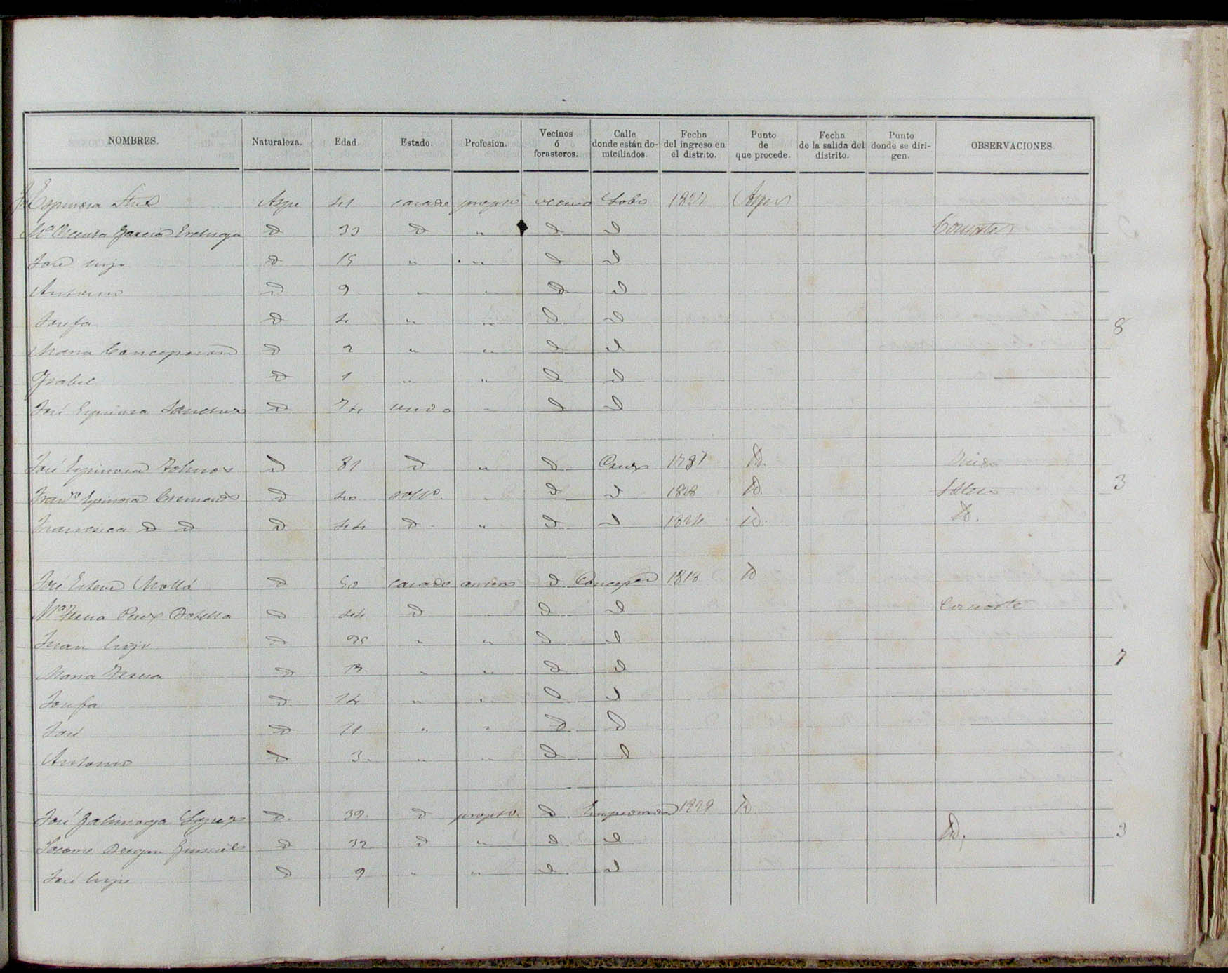 Padrón de habitantes, 1867
