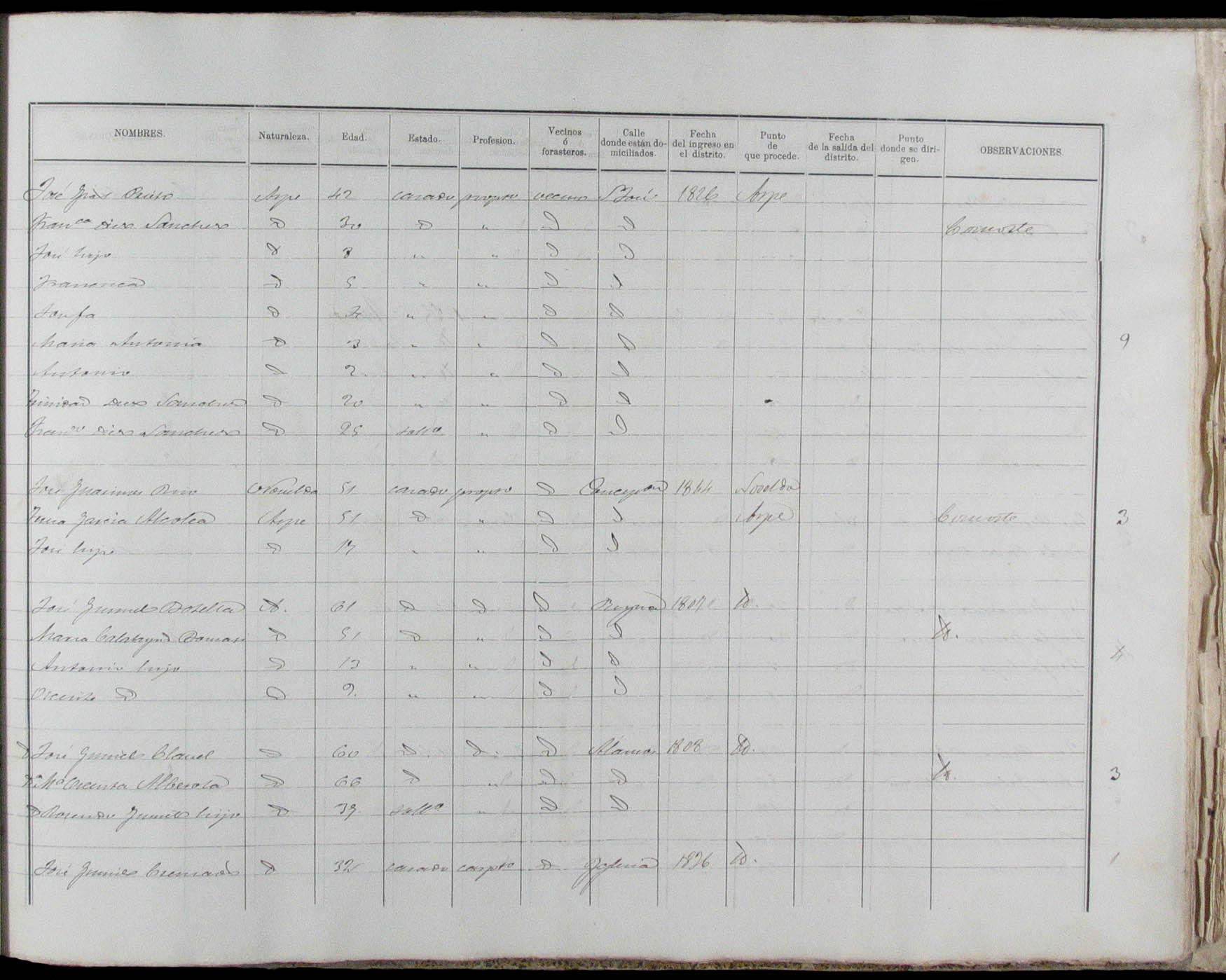 Padrón de habitantes, 1867