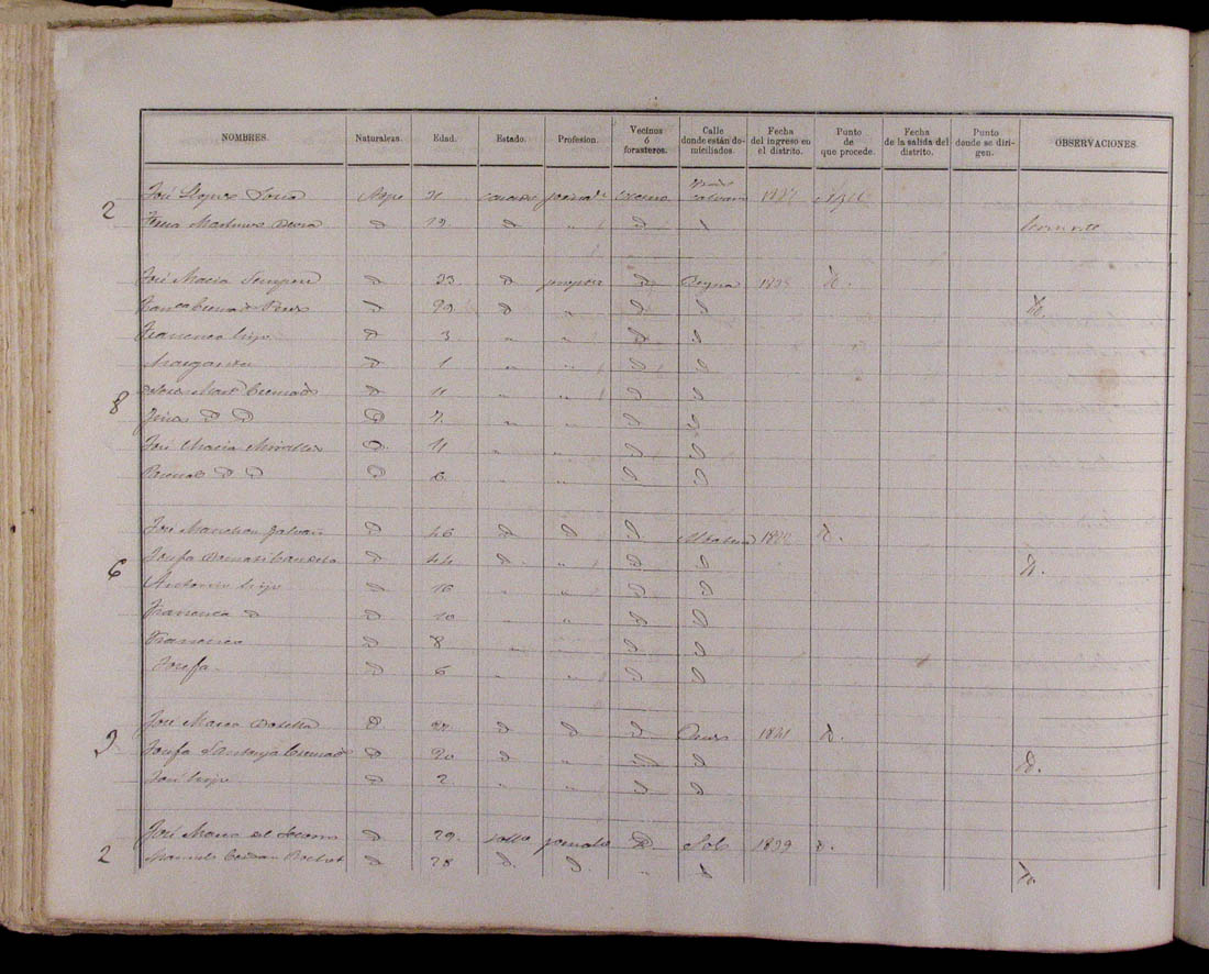 Padrón de habitantes, 1867