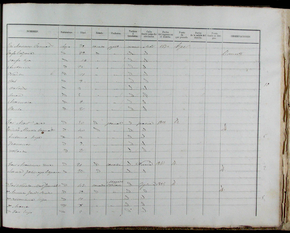 Padrón de habitantes, 1867