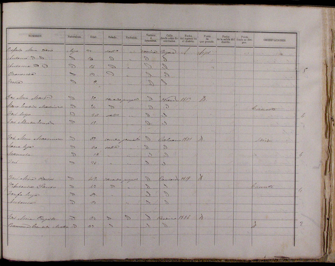 Padrón de habitantes, 1867