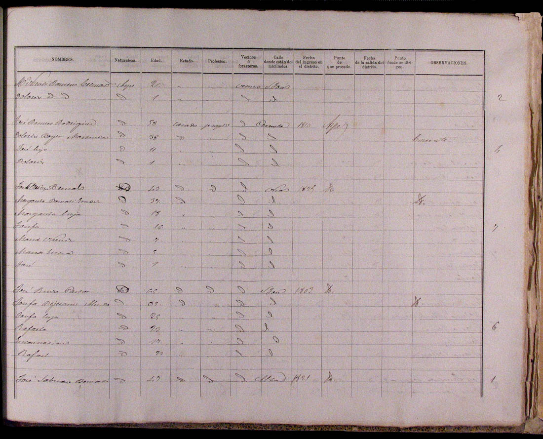 Padrón de habitantes, 1867