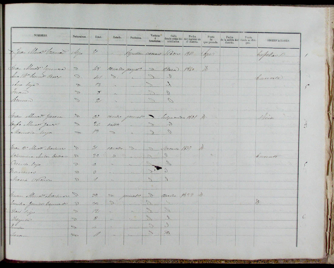 Padrón de habitantes, 1867