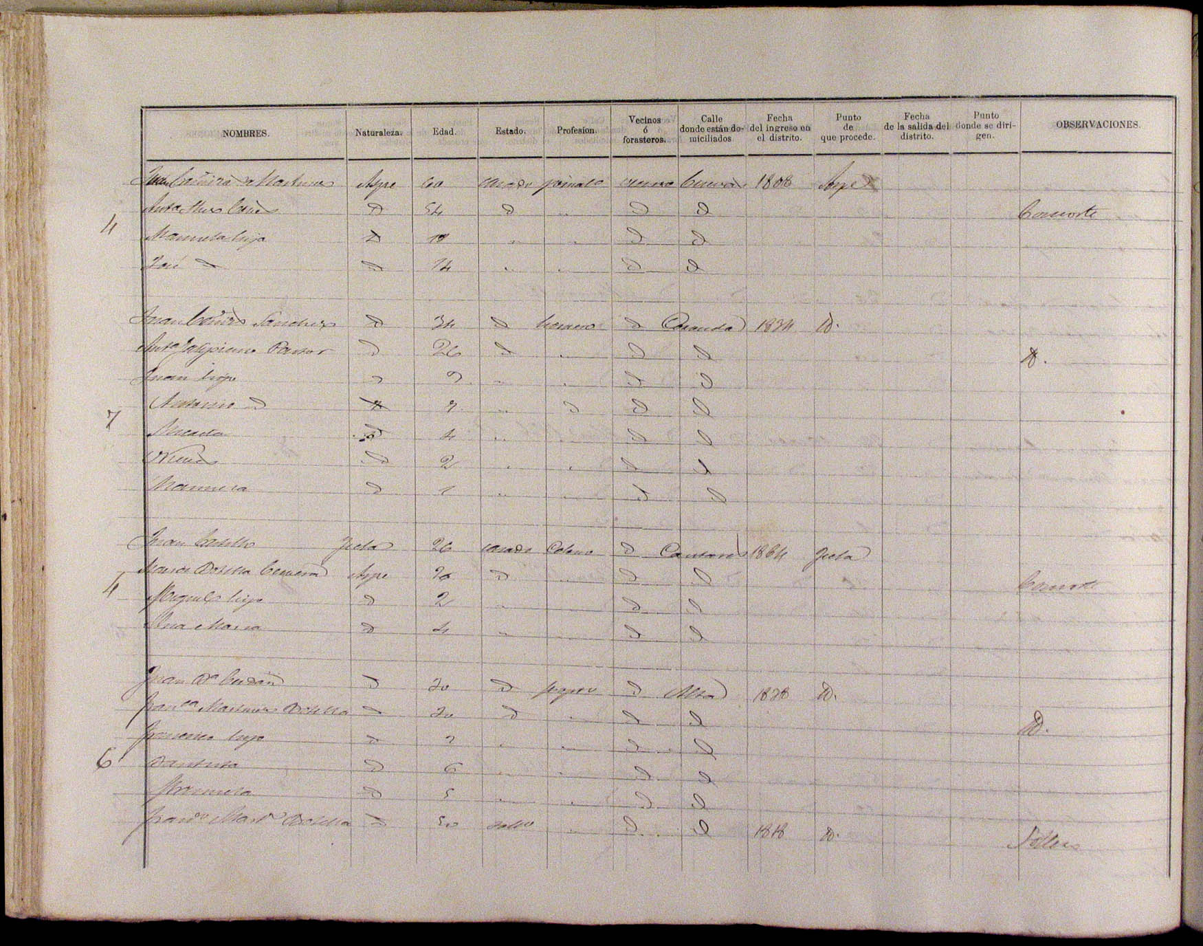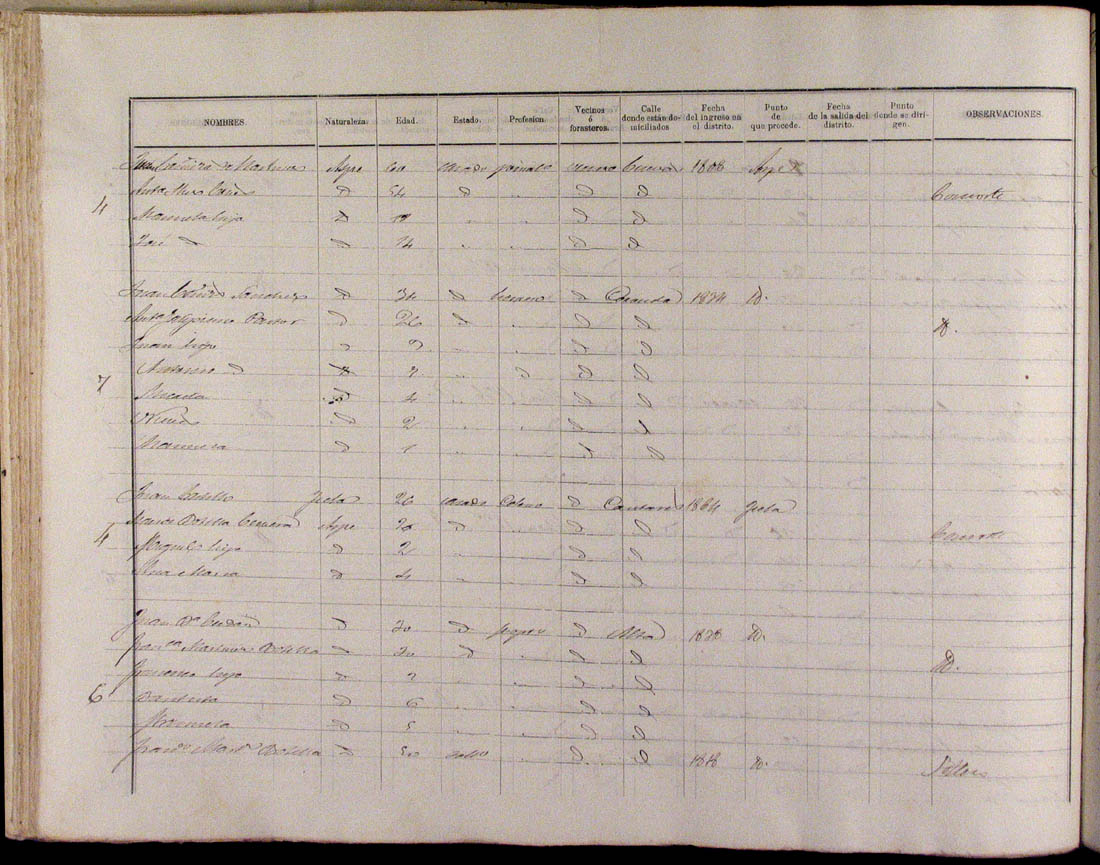 Padrón de habitantes, 1867