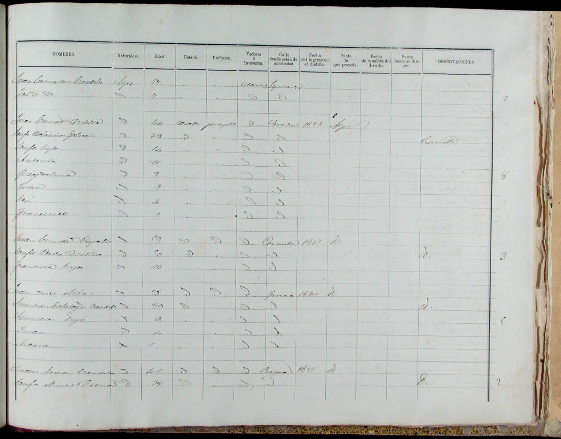 Padrón de habitantes, 1867