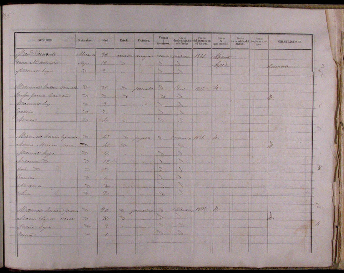 Padrón de habitantes, 1867