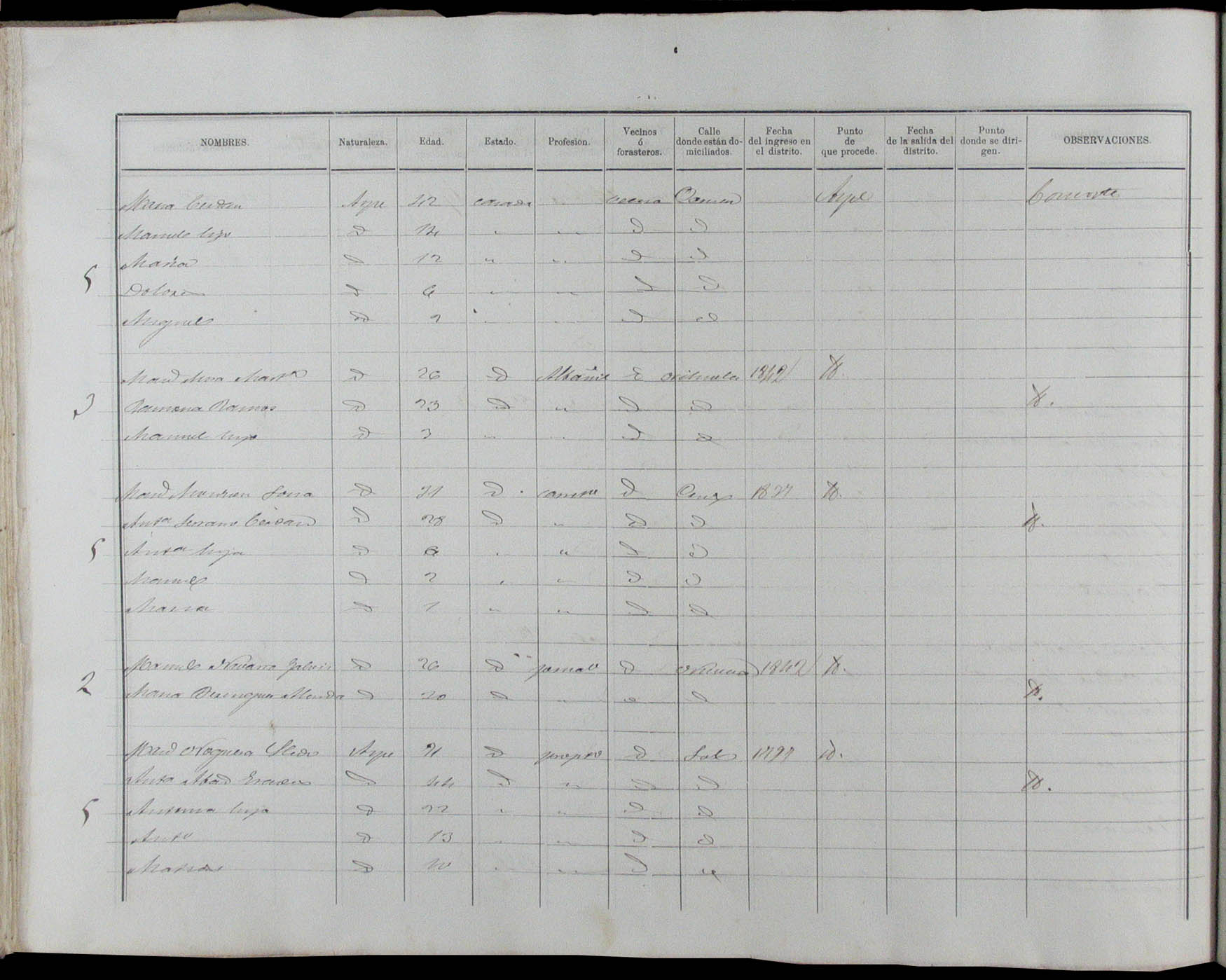 Padrón de habitantes, 1867