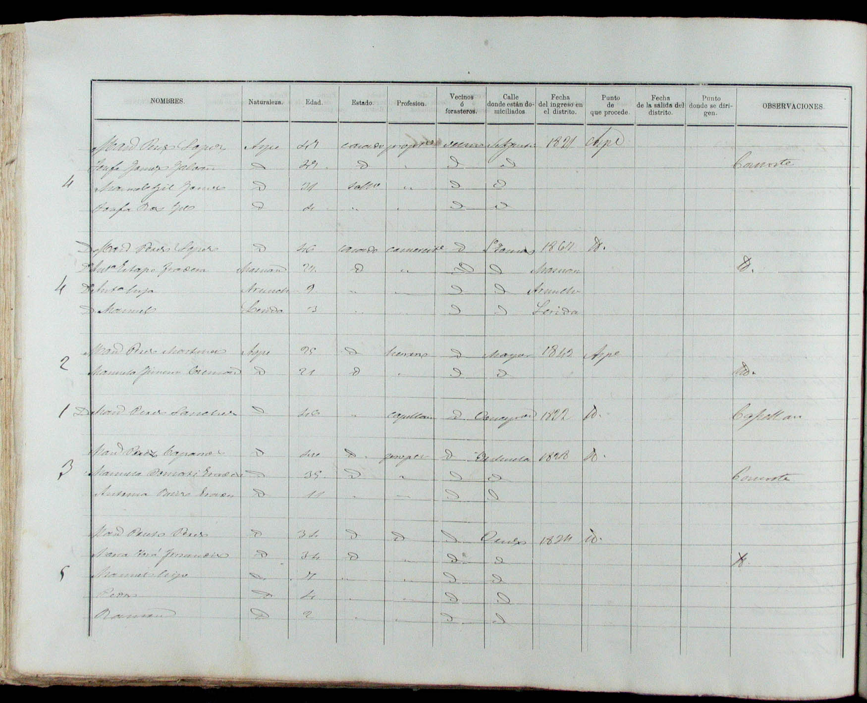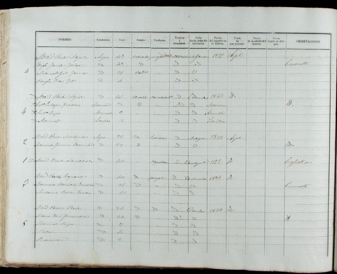 Padrón de habitantes, 1867