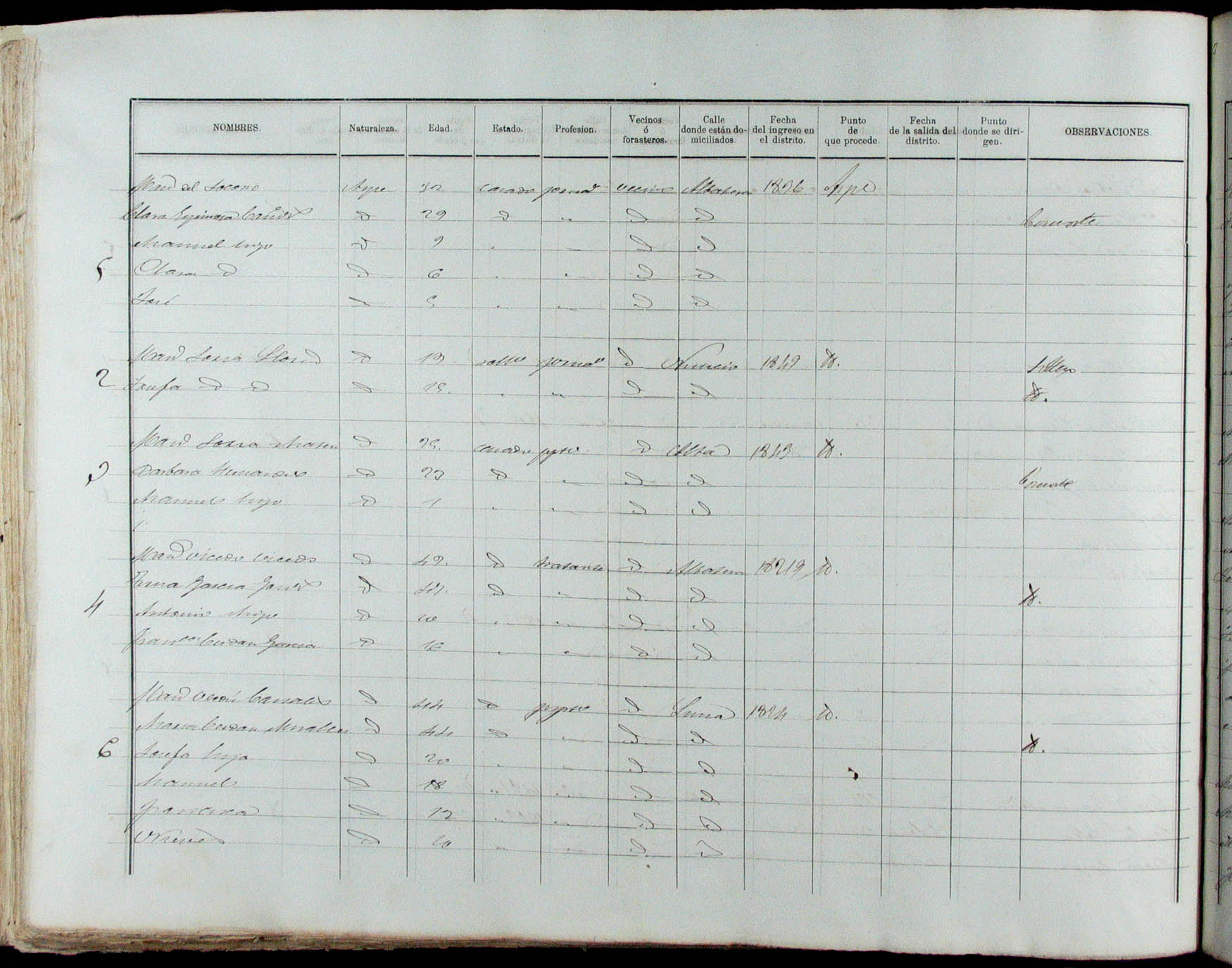 Padrón de habitantes, 1867