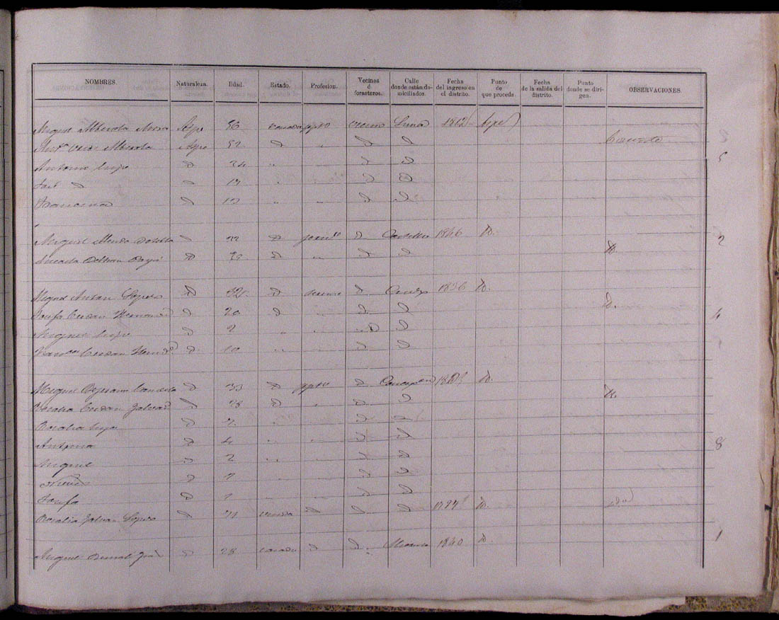Padrón de habitantes, 1867