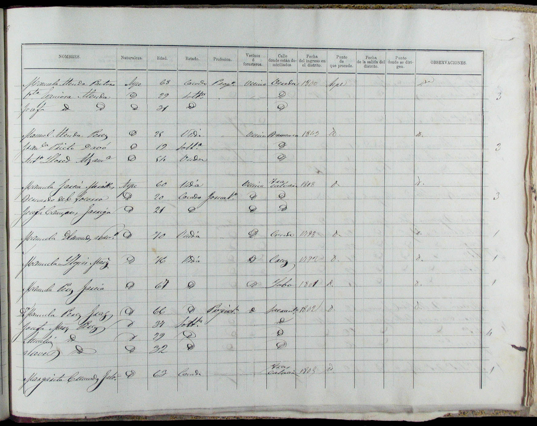 Padrón de habitantes, 1867