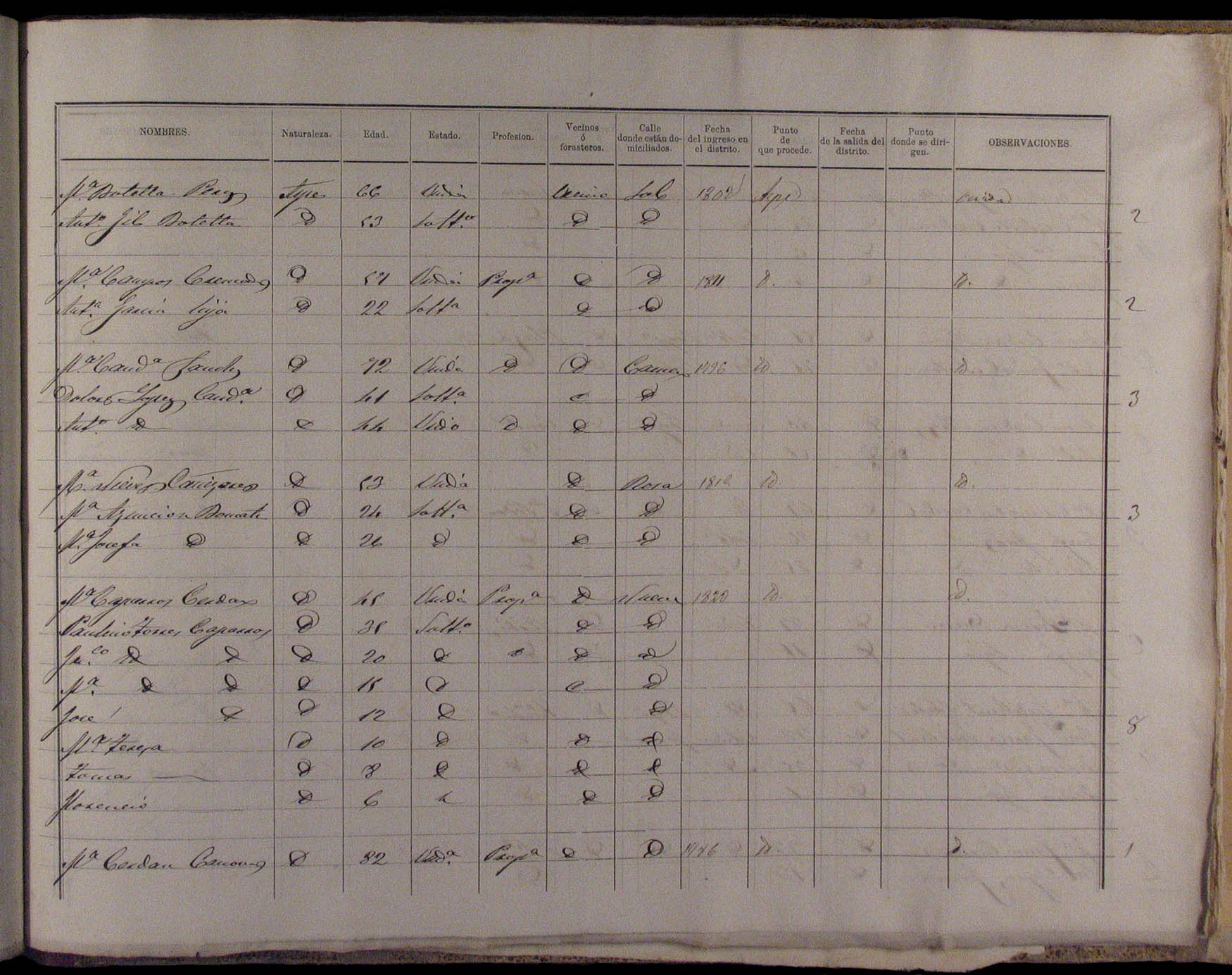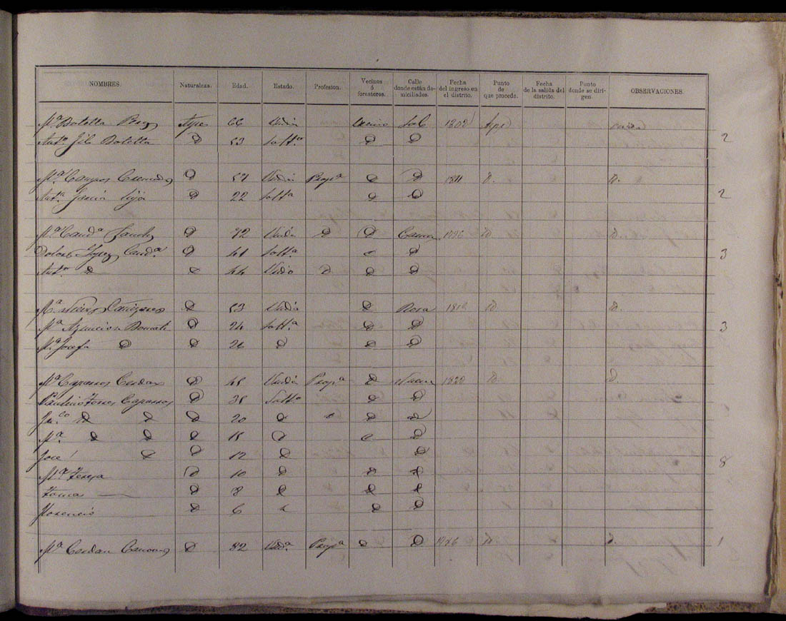 Padrón de habitantes, 1867