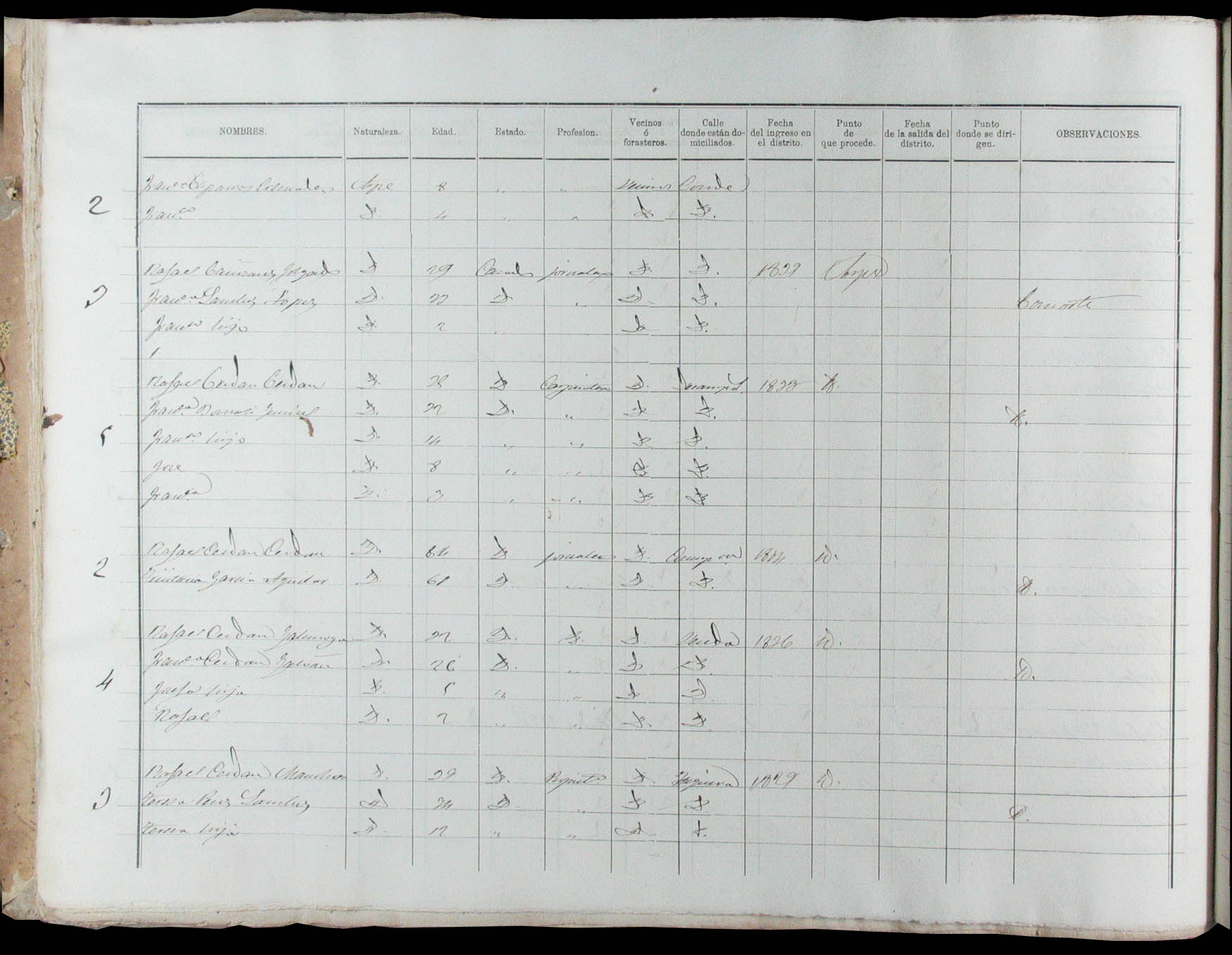 Padrón de habitantes, 1867