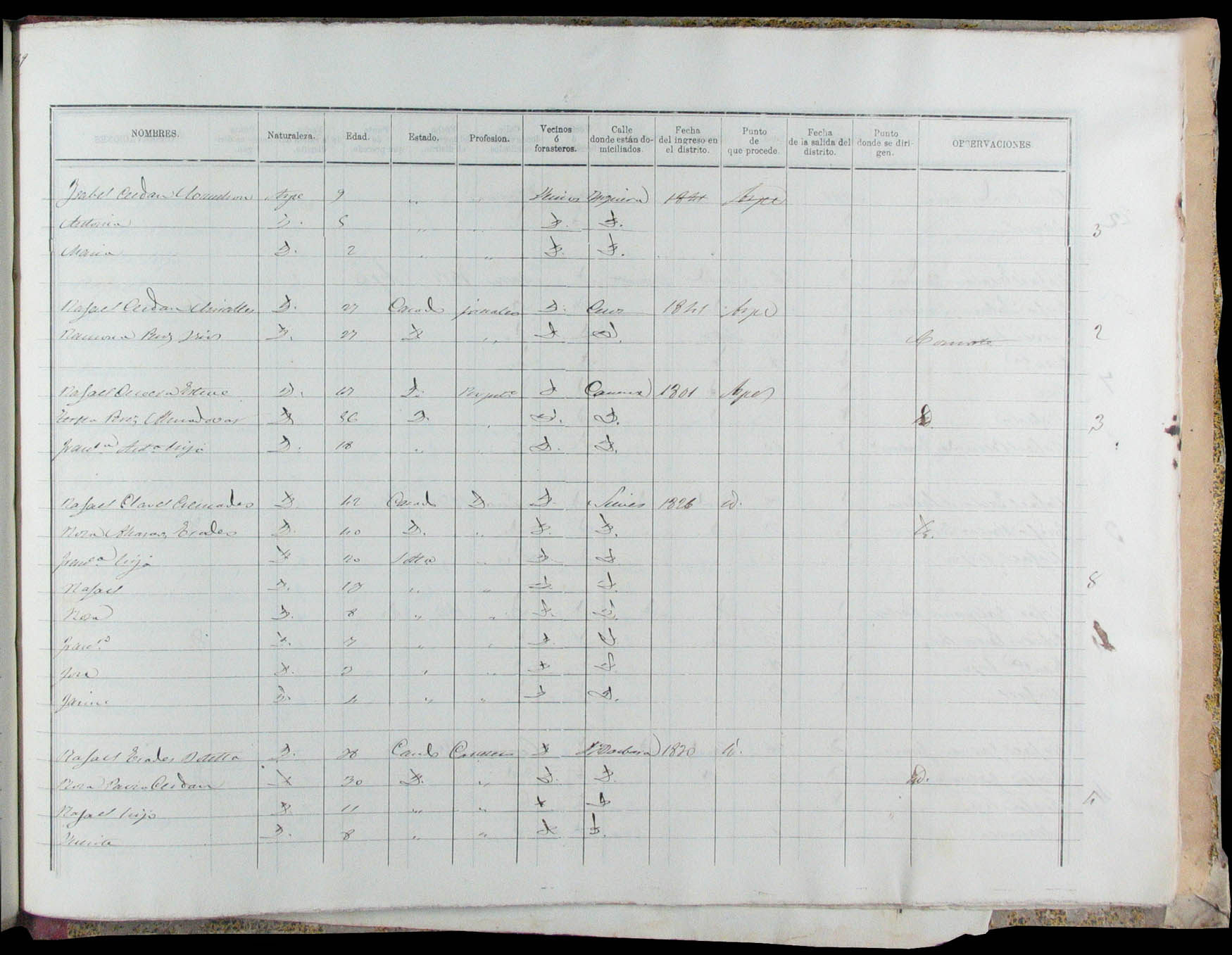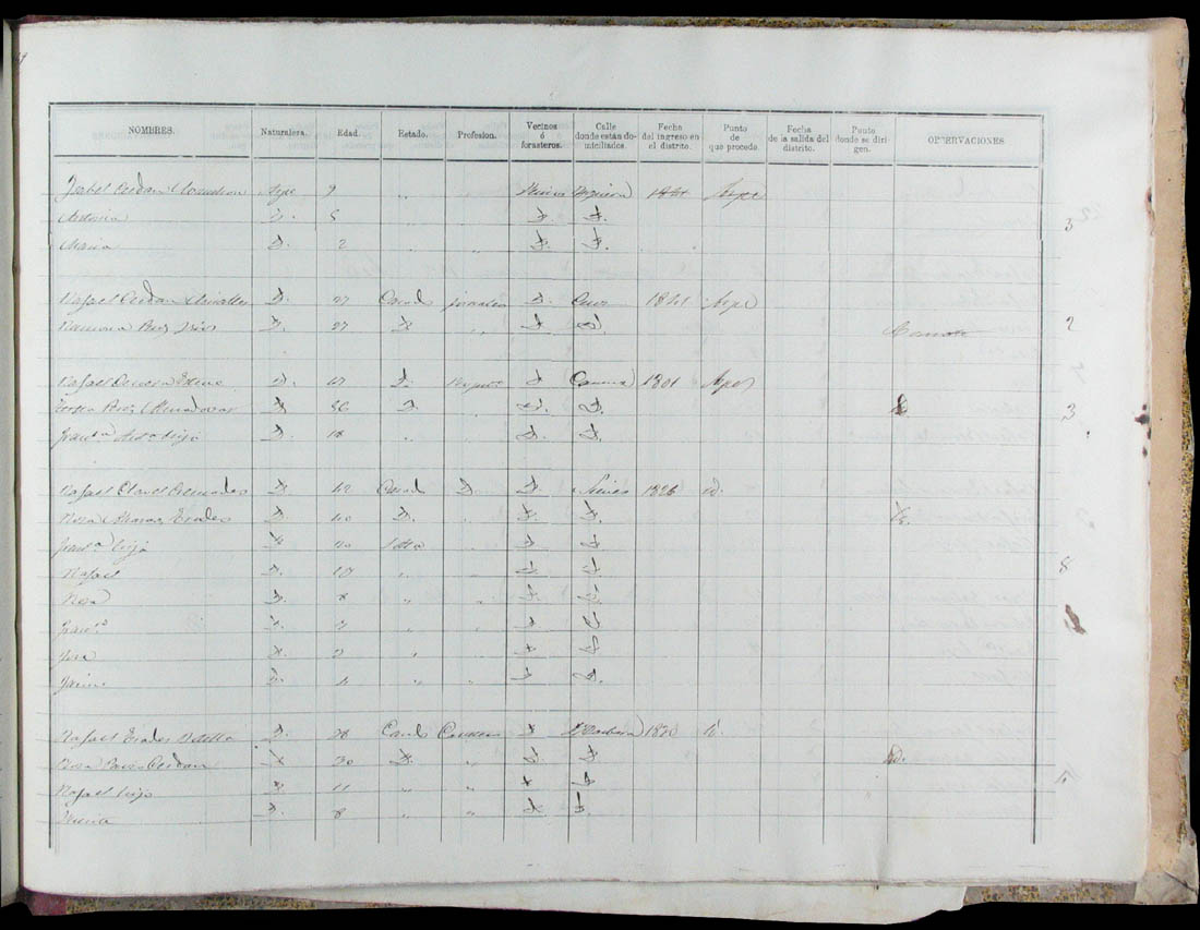 Padrón de habitantes, 1867