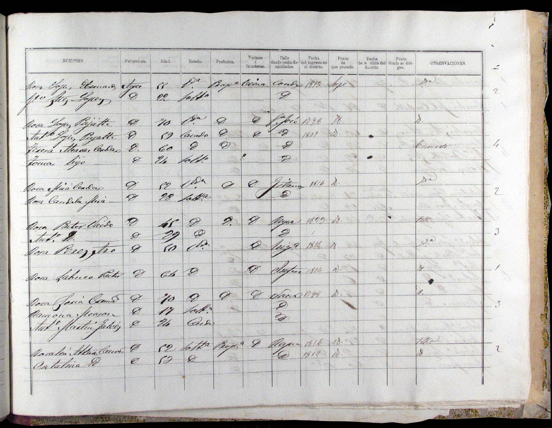 Padrón de habitantes, 1867