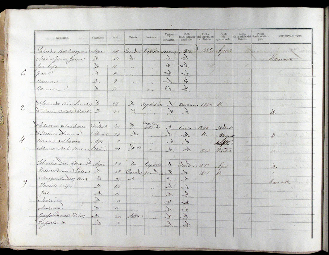 Padrón de habitantes, 1867