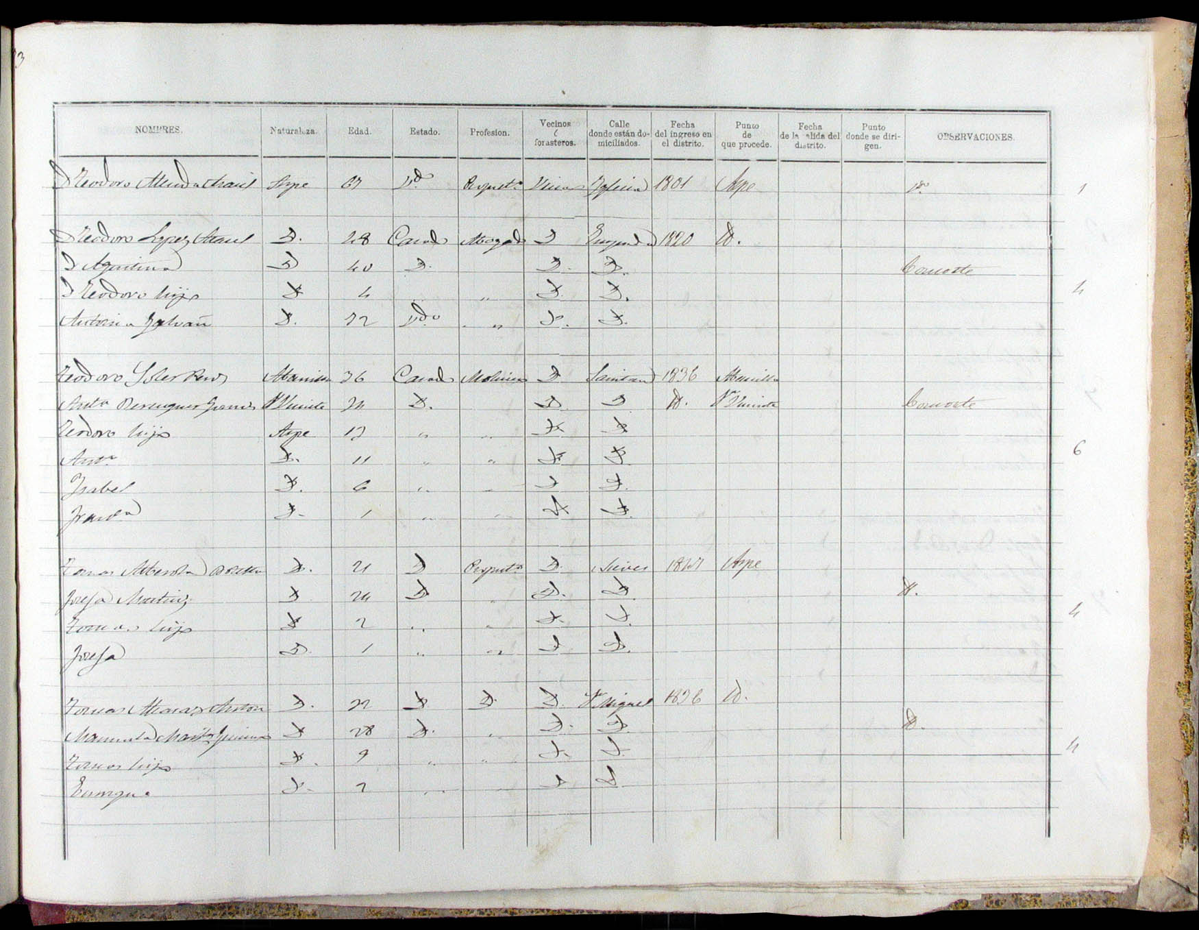 Padrón de habitantes, 1867