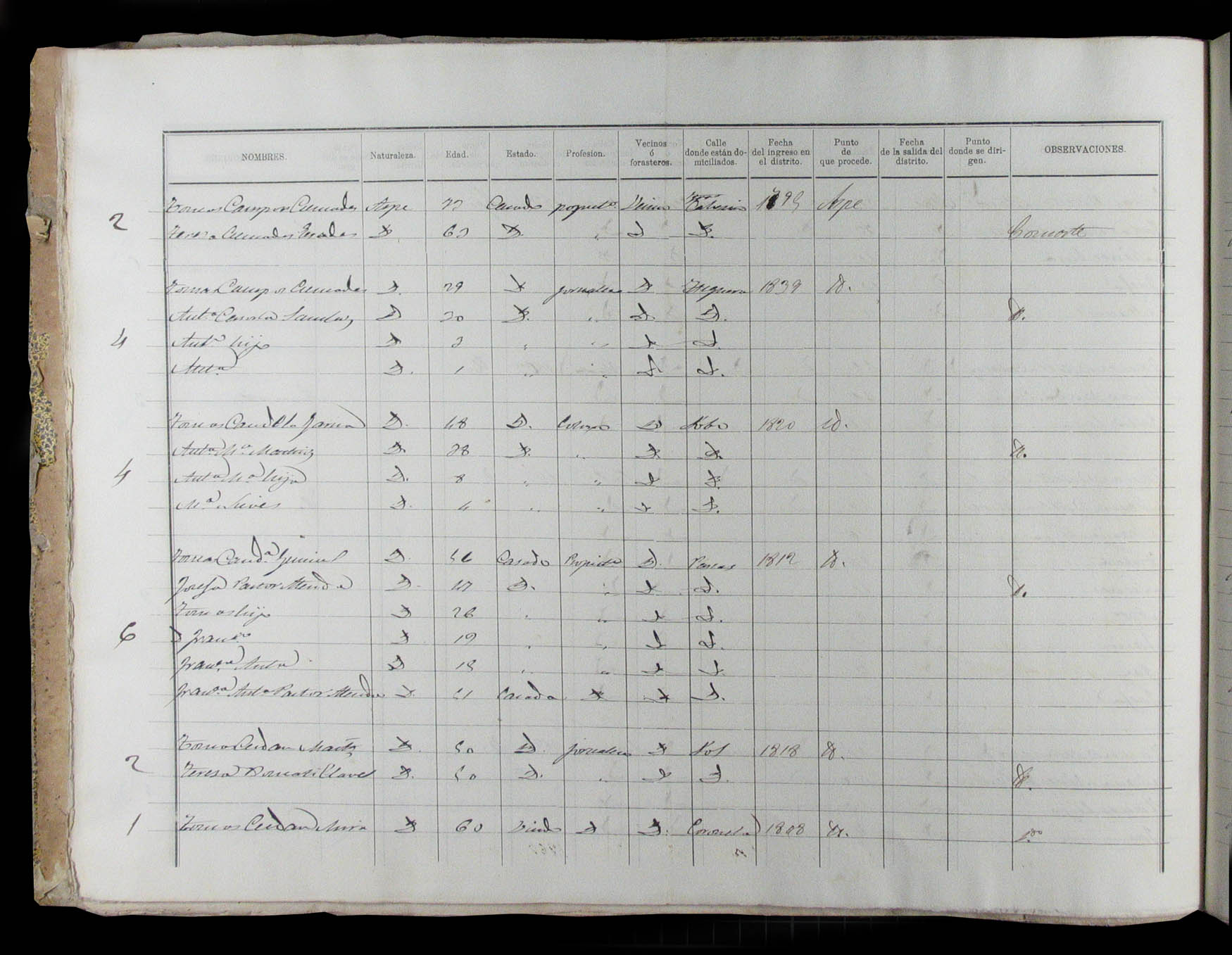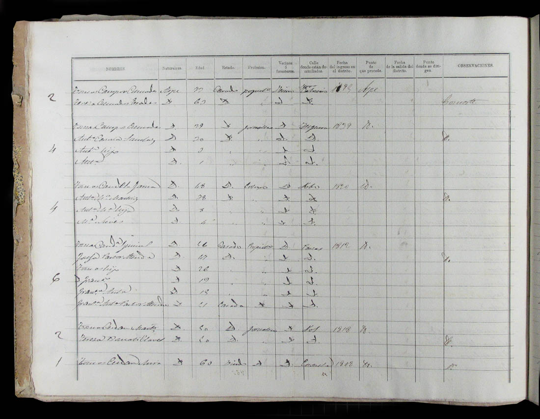 Padrón de habitantes, 1867