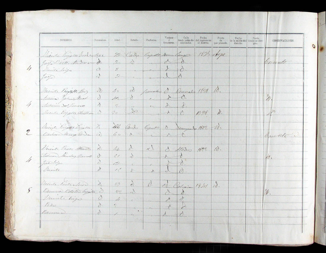Padrón de habitantes, 1867