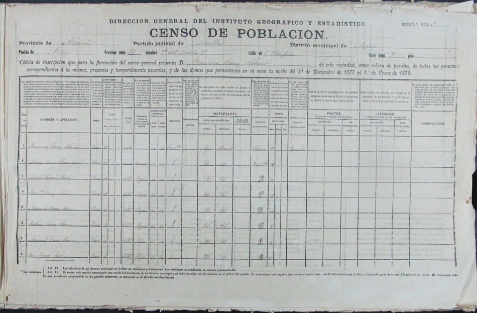 Hojas declaratorias por familias y Padrón de habitantes, 1877
