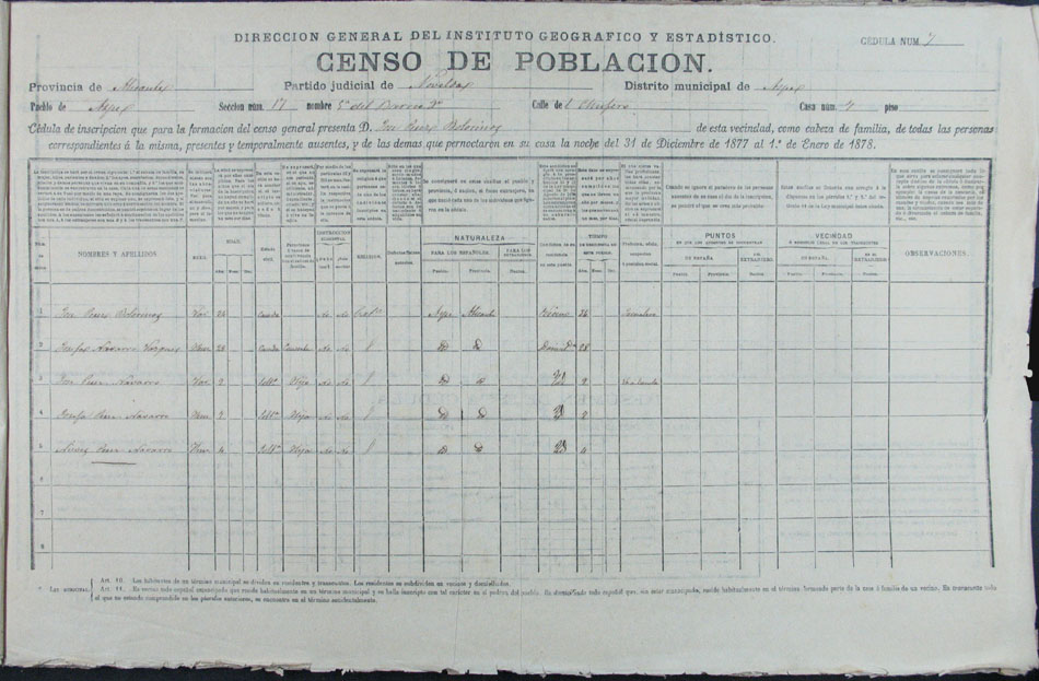 Hojas declaratorias por familias y Padrón de habitantes, 1877