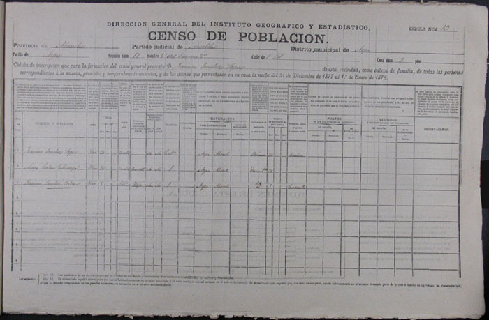 Hojas declaratorias por familias y Padrón de habitantes, 1877