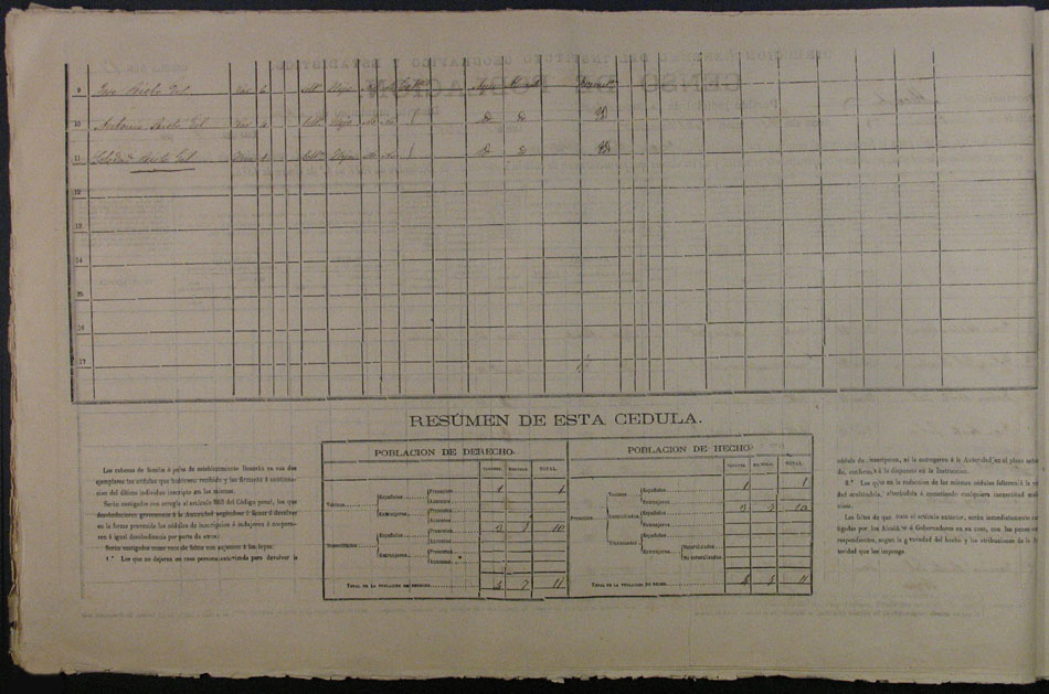 Hojas declaratorias por familias y Padrón de habitantes, 1877