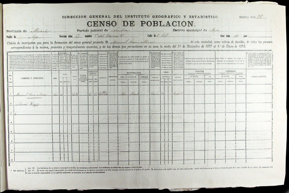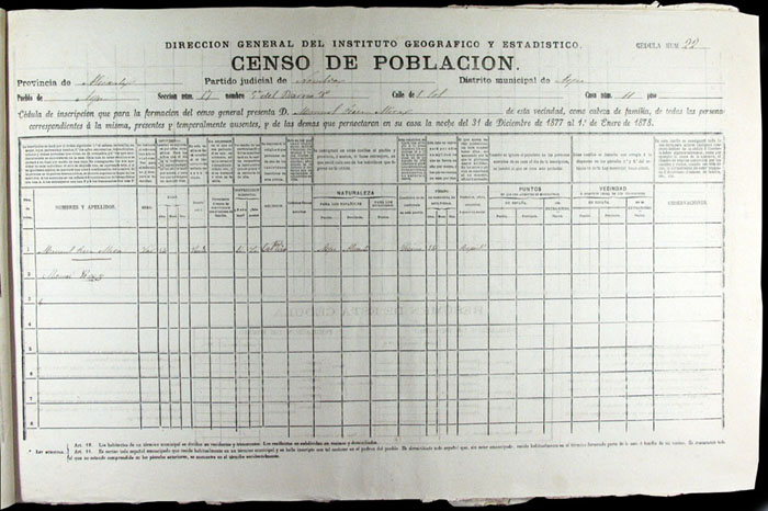 Hojas declaratorias por familias y Padrón de habitantes, 1877