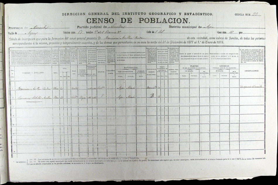 Hojas declaratorias por familias y Padrón de habitantes, 1877