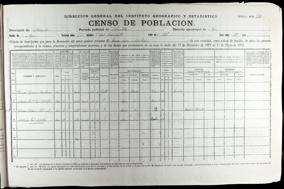 Hojas declaratorias por familias y Padrón de habitantes, 1877
