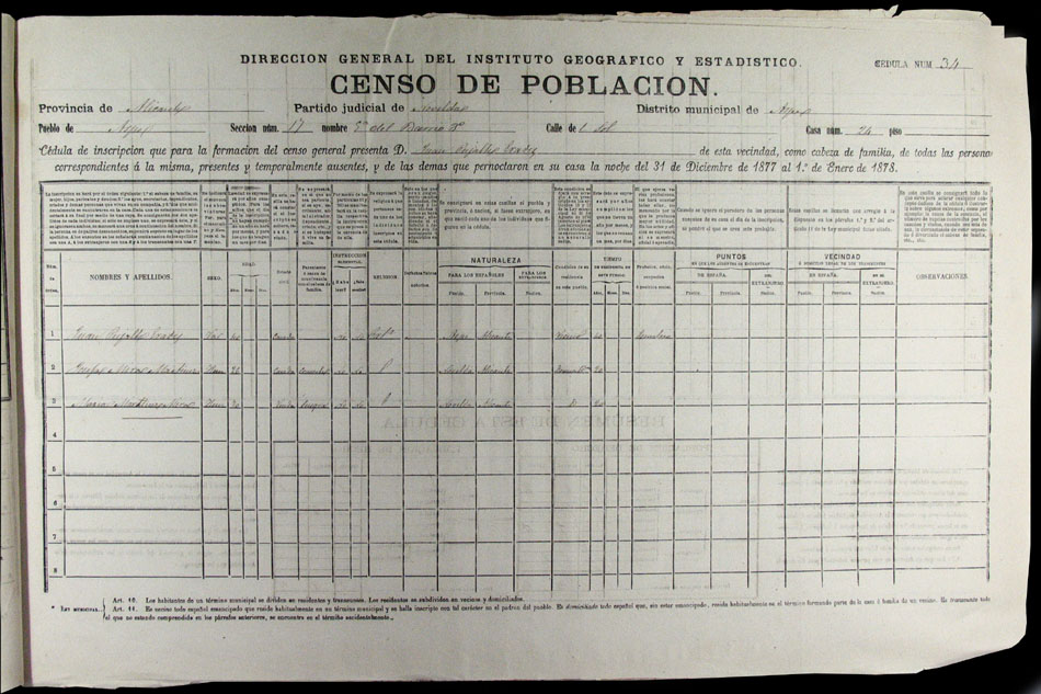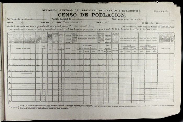 Hojas declaratorias por familias y Padrón de habitantes, 1877
