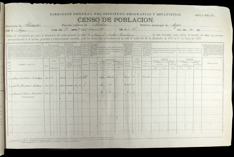 Hojas declaratorias por familias y Padrón de habitantes, 1877