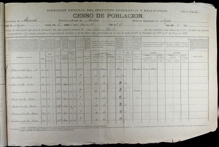 Hojas declaratorias por familias y Padrón de habitantes, 1877