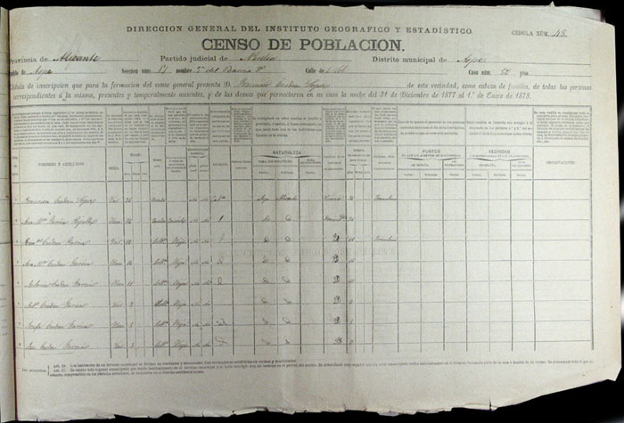 Hojas declaratorias por familias y Padrón de habitantes, 1877