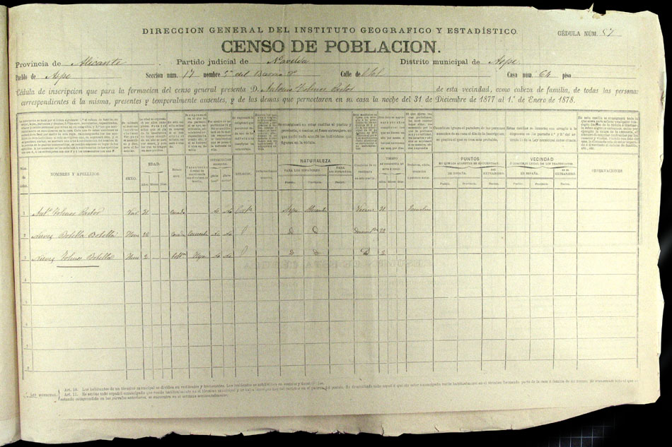 Hojas declaratorias por familias y Padrón de habitantes, 1877