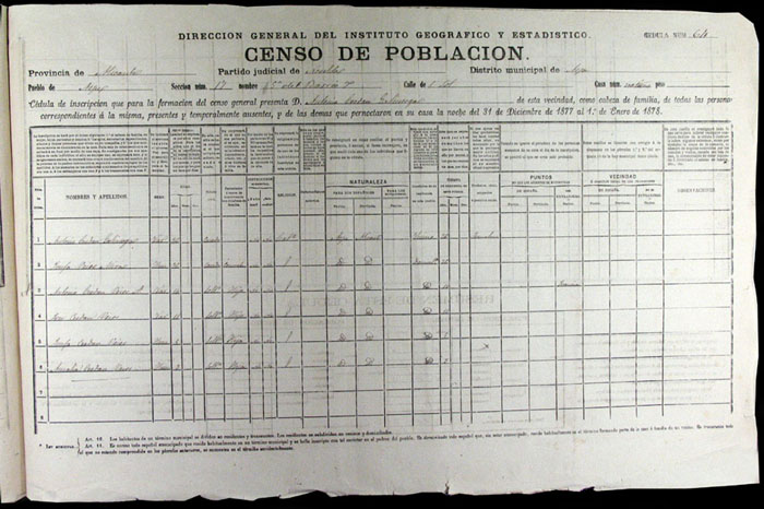 Hojas declaratorias por familias y Padrón de habitantes, 1877