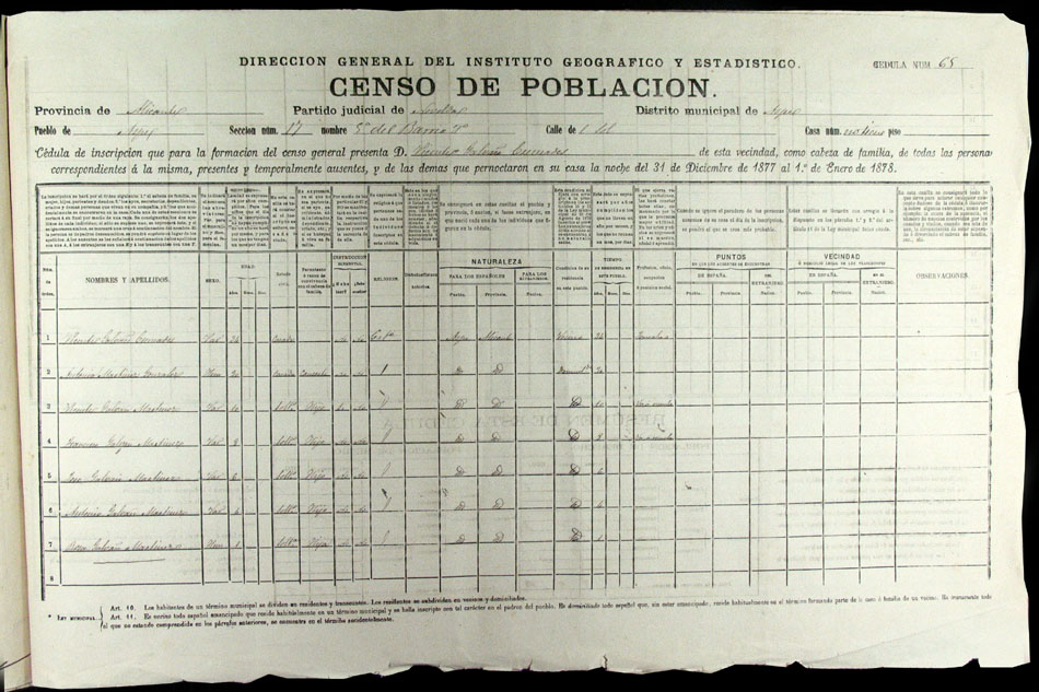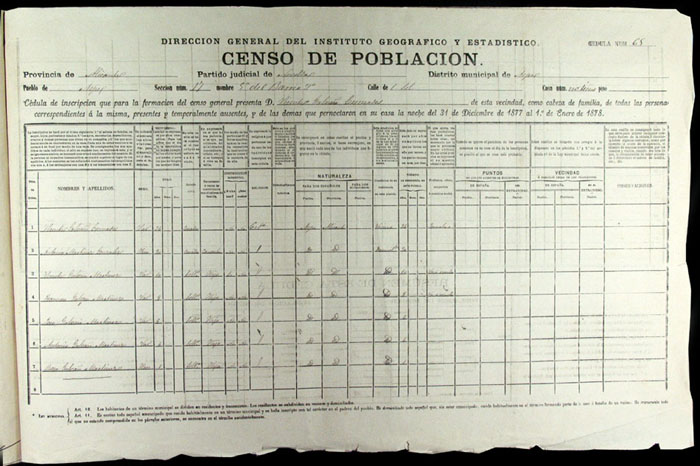 Hojas declaratorias por familias y Padrón de habitantes, 1877