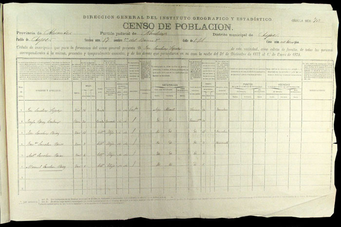 Hojas declaratorias por familias y Padrón de habitantes, 1877