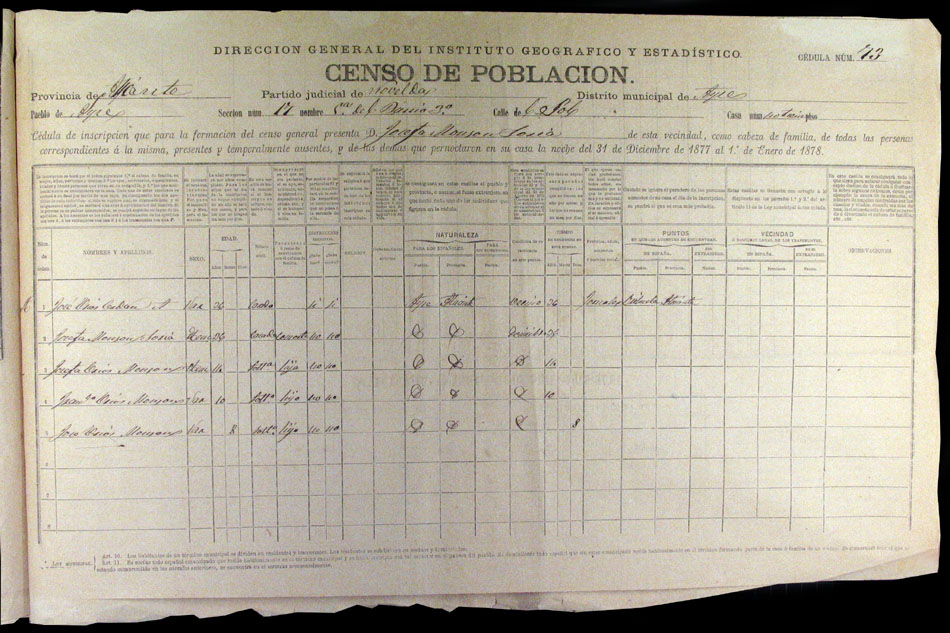 Hojas declaratorias por familias y Padrón de habitantes, 1877