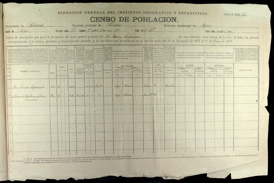 Hojas declaratorias por familias y Padrón de habitantes, 1877