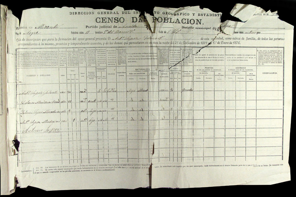 Hojas declaratorias por familias y Padrón de habitantes, 1877