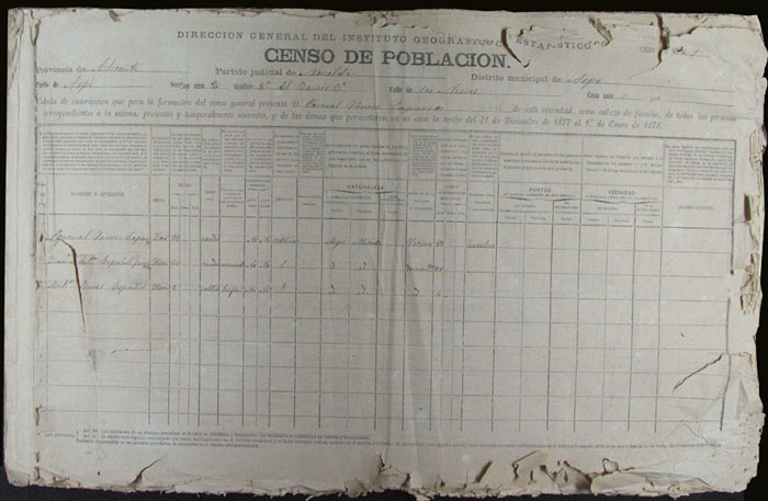 Hojas declaratorias por familias y Padrón de habitantes, 1877