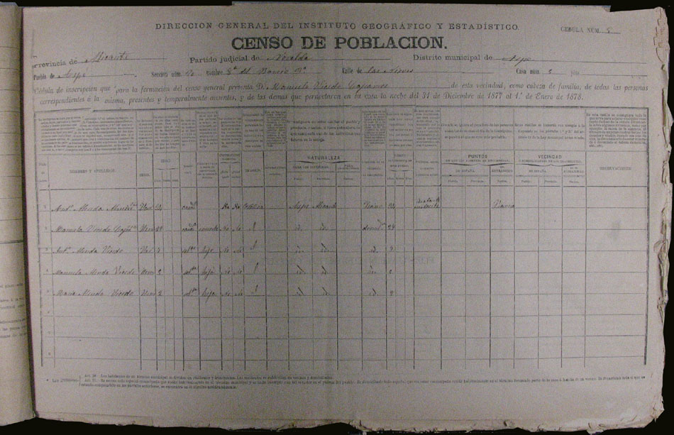Hojas declaratorias por familias y Padrón de habitantes, 1877