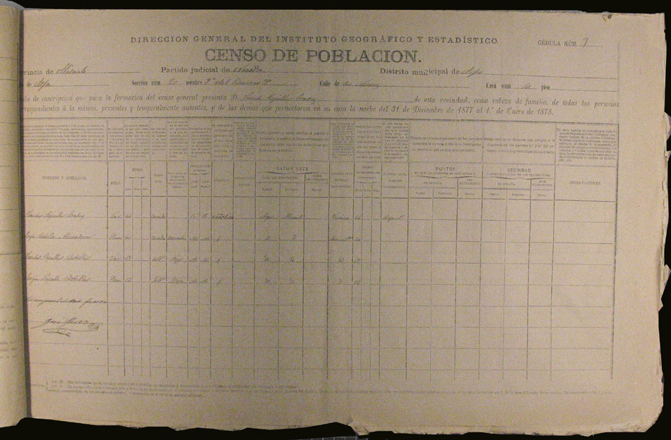Hojas declaratorias por familias y Padrón de habitantes, 1877